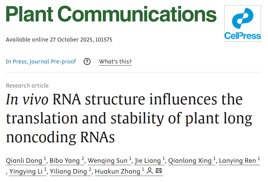 2025年10月27日,东北师范大学张铧坤教授团队在Plant Communications杂志在线发表了题为“In vivo RNA structure influences the translation and stability of plant long noncoding RNAs”的研究论文。这项研究综合利用体内RNA结构组学测序、翻译组学和降解组学技术,首次在双子叶模式植物拟南芥和单子叶作物小麦中,系统阐明了长非编码RNA(lncRNA)的体内二级结构是其翻译效率和RNA稳定性的核心调控因子。该研究绘制了全面的植物lncRNA特征与调控图谱,为理解植物非编码RNA的转录后调控机制提供了全新视角。