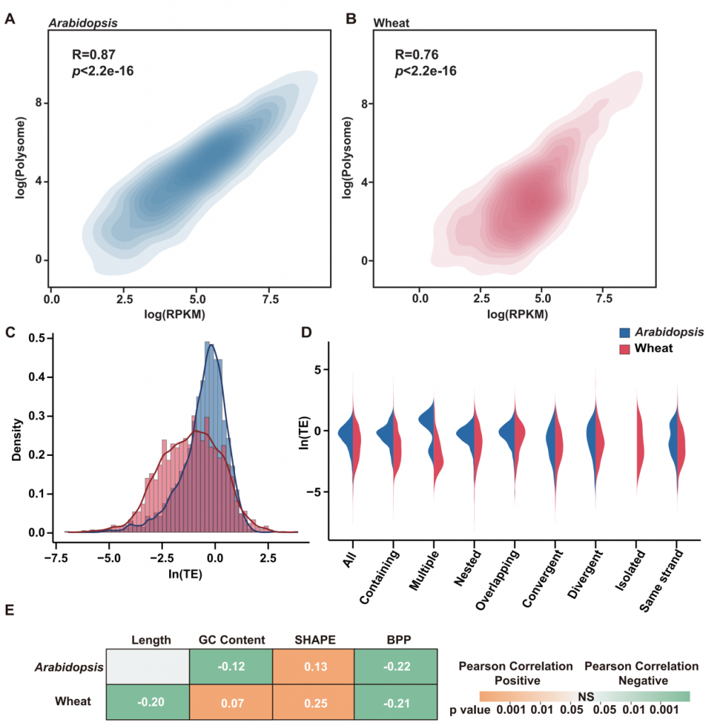 图3 拟南芥和小麦中植物lncRNA的翻译景观