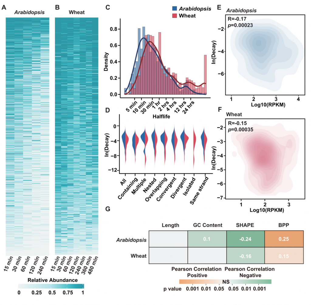 图4 拟南芥和小麦中lncRNA的RNA降解景观