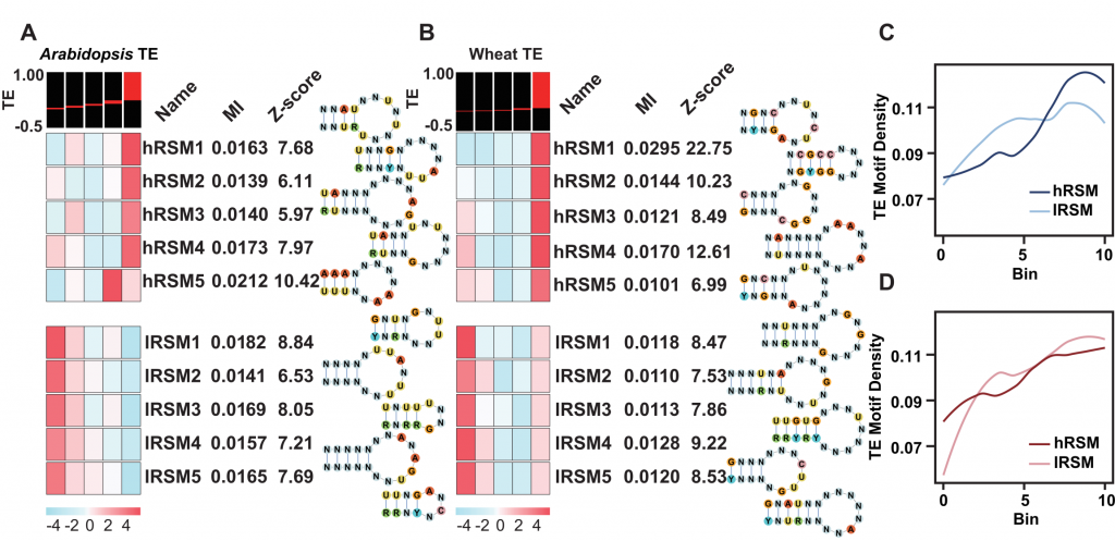 图5 系统鉴定调控拟南芥和小麦lncRNA翻译效率的RNA结构基序