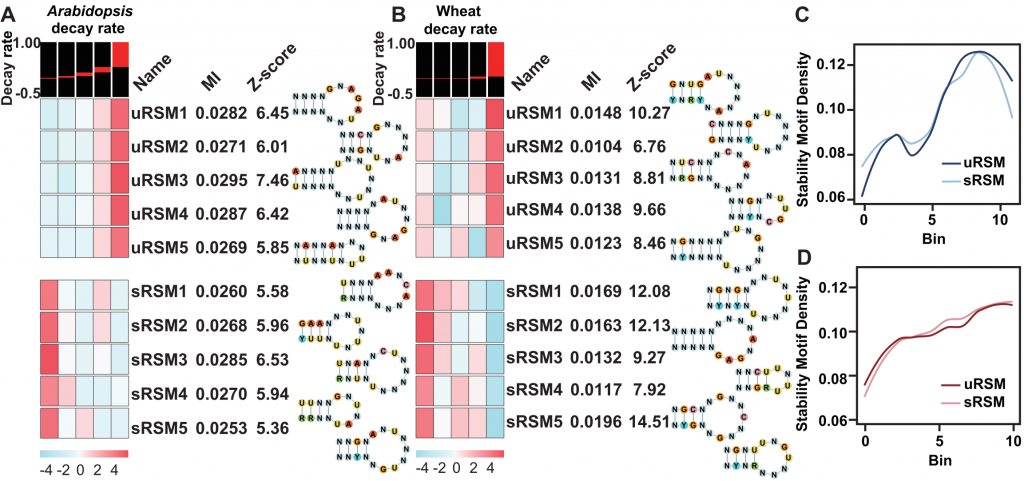 图6 系统鉴定与拟南芥和小麦lncRNA稳定性相关的RNA结构基序